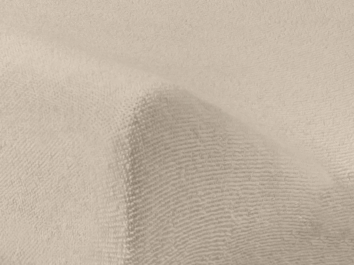 100% badstofkatoen. Aan de randen zit elastiek net als bij een hoeslaken. Zo blijft het goed zitten.