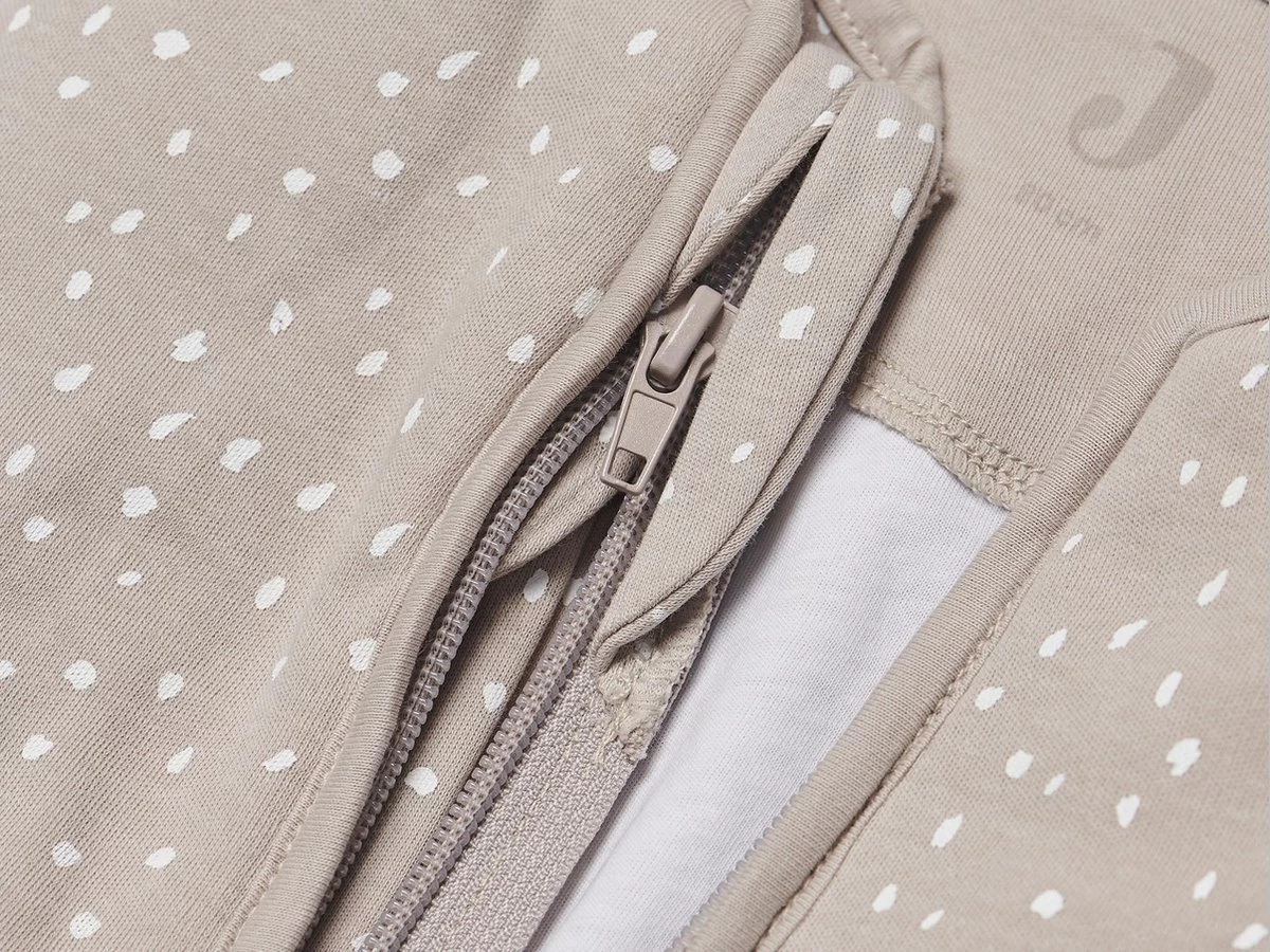Deze slaapzak heeft een rustige stippenprintje in twee kleuren. Ga je voor de Nougat of voor de grijze variant?