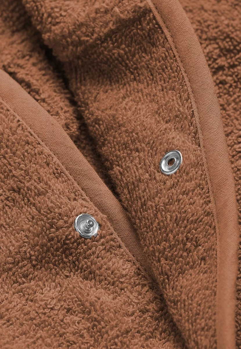 Verkrijgbaar in vijf trendy kleuren. Shop het badstof badjasje in roze, caramel, nougat, grijs, groen en blauw