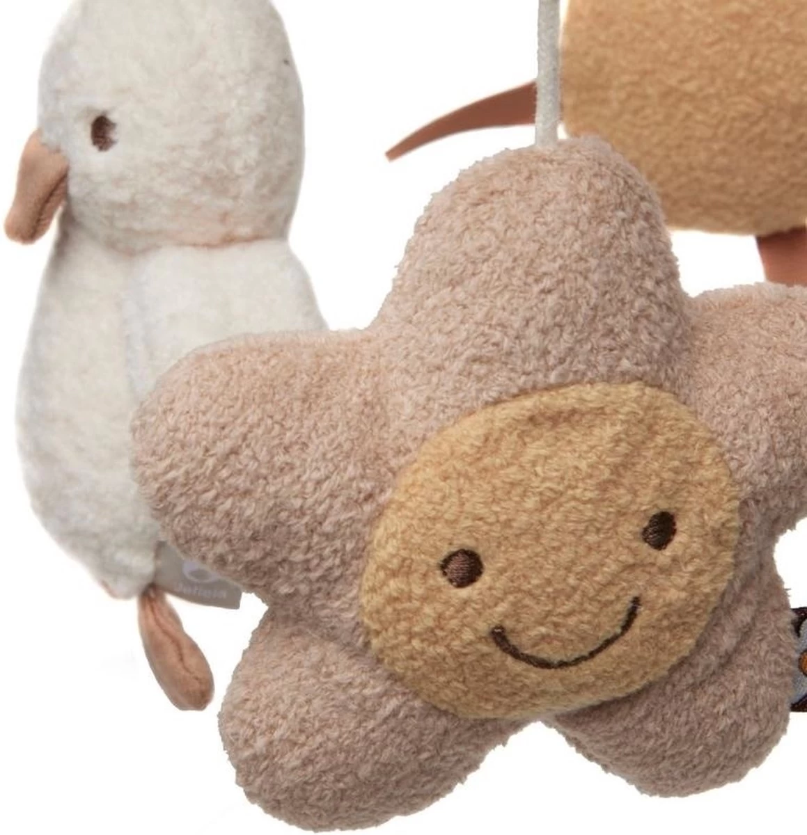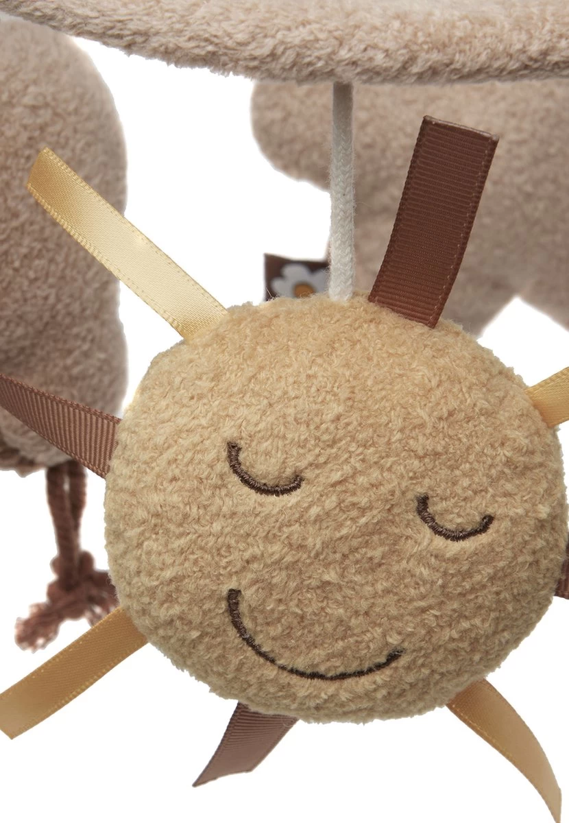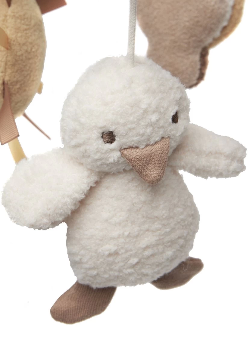 Deze leuke babymobiel heeft neutrale kleuren.