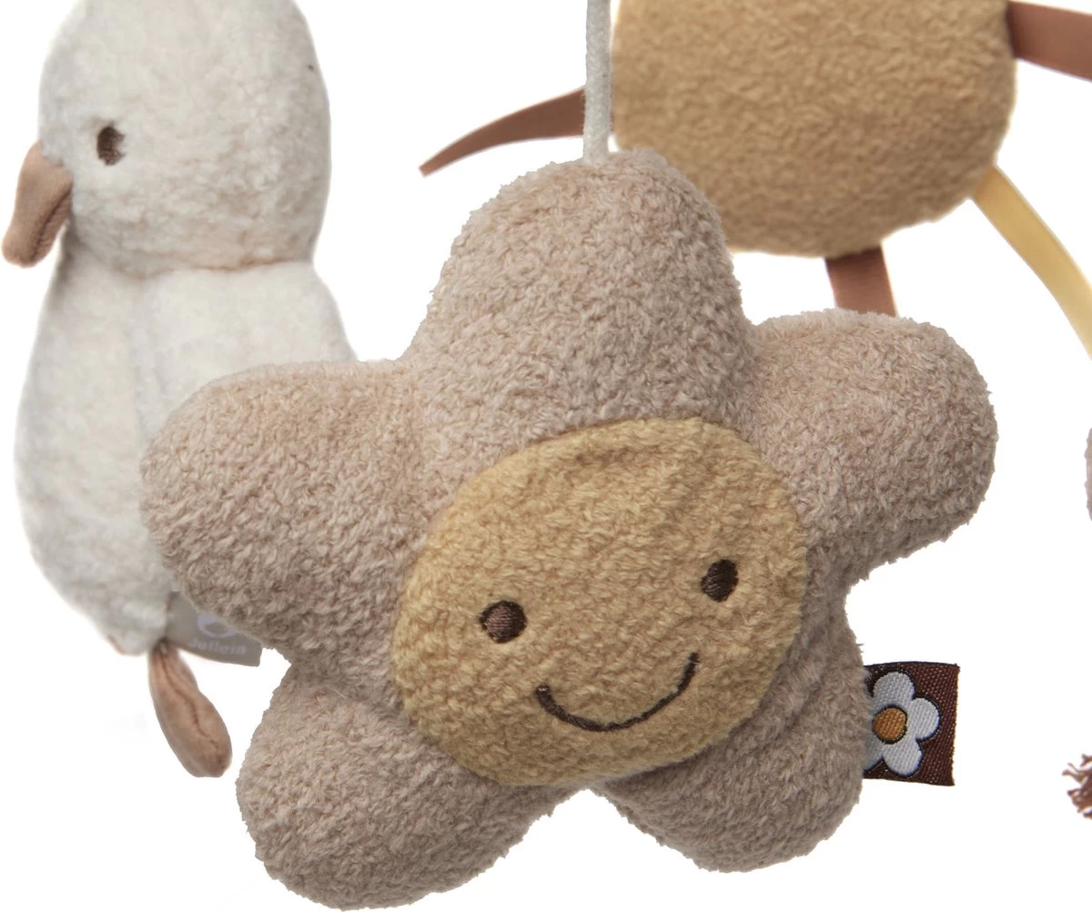 Deze baby mobiel met het Spring Garden thema is ideaal voor jouw kleintje! Je kunt de mobiel aan de rand van de box bevestigen voor veel speelplezier of aan de rand van het ledikantje voor het slaapritueel. Je combineert deze babymobiel met de houten arm voor mobiel. Deze wordt niet standaard bijgeleverd, maar uiteraard wel verkrijgbaar bij Jollein.Je kleine baby heeft na enkele weken al iets meer momenten op een dag dat het wakker is en dan wil het natuurlijk graag vermaakt worden. Deze babymobiel met leuke speeltjes vermaakt je kindje zeker weten. Ook super leuk om als (kraam)cadeau te geven.