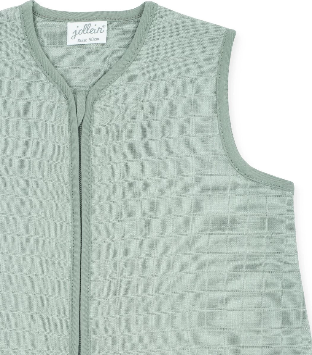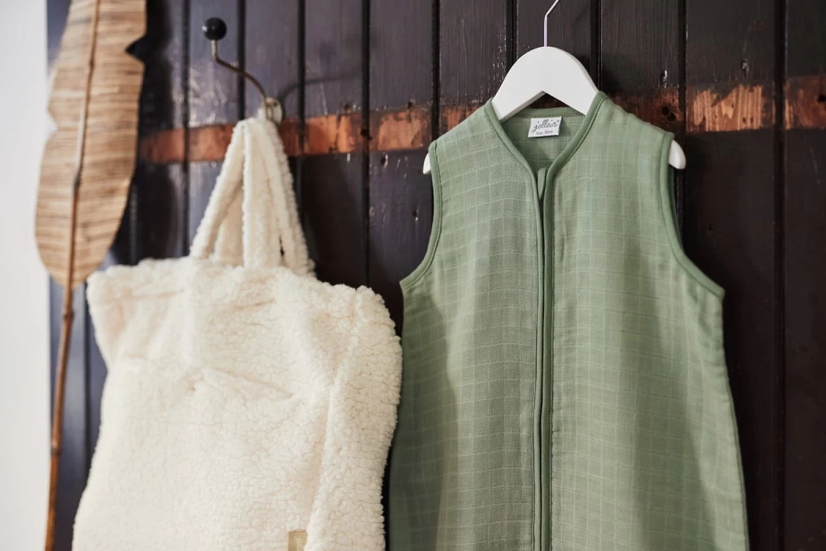 Effen gekleurde slaapzak van luchtig ademend hydrofiel. De prachtige groene kleur van deze slaapzak matcht in elke stijl babykamer. Een fijne basic!