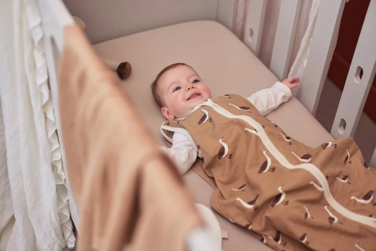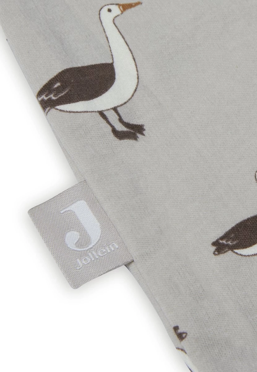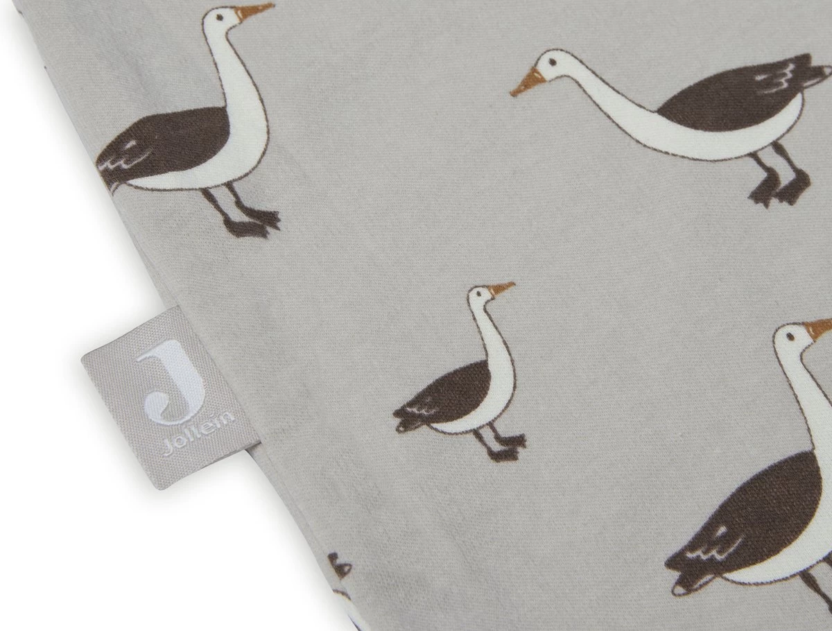 Het Goose thema is vrolijk met zijn schattige witte gansjes op een neutrale achtergrond van nougat of biscuit. In het thema vind je alleen slaapzakjes van heerlijke stretchy jersey met een TOG-waarde van 0.5. Goose is een perfecte match met Pointelle dekentjes van Jollein.