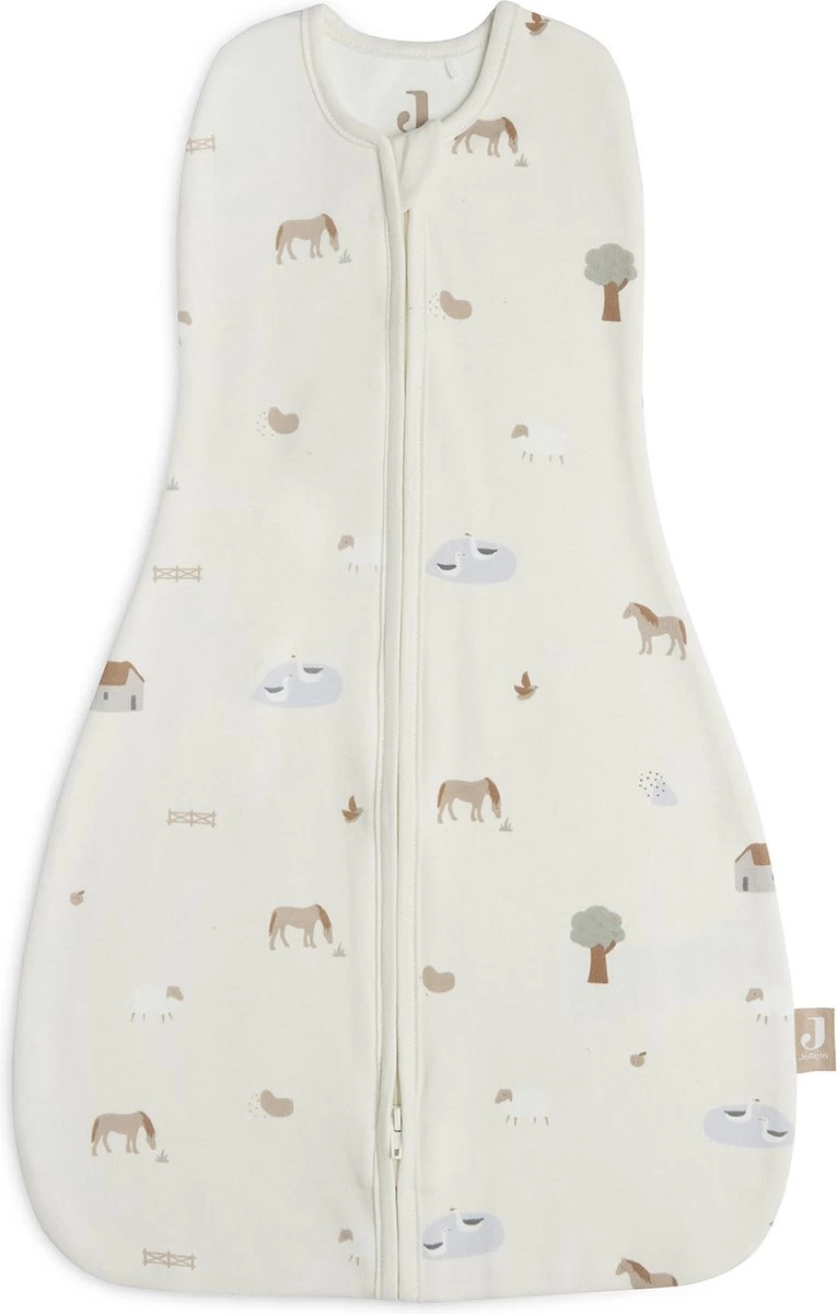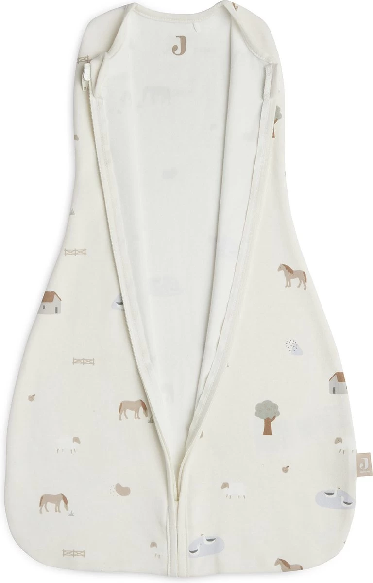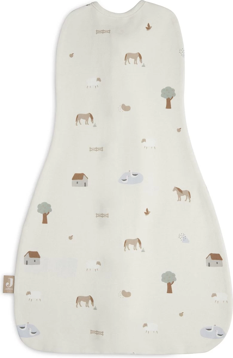Een cocoon slaapzakje is een inbaker slaapzakje voor de allerkleinsten. In de eerste 3 maanden vinden baby’s het fijn om lekker strak ingepakt te worden om zo dat geborgen gevoel van de buik van mama te voelen. Ook heeft jouw newborn een schrikreflex waardoor het zichzelf gemakkelijk kan wakker slaan met de armpjes. Dit alles zorgt ervoor dat inbakeren in de eerste maanden een perfecte oplossing is. Natuurlijk wil jij wel inbakeren in stijl. Dat kan met dit leuke inbaker slaapzakje met stoere Farm print. Het slaapzakje heeft gesloten armsgaten waardoor je baby echt ingebakerd zit en zichzelf niet wakker kan slaan met de armpjes. De TOG-waarde is 0.5. Het Newborn cocoon slaapzakje wordt geleverd in een leuke verpakking wat hem ook een perfect kraamcadeautje maakt.