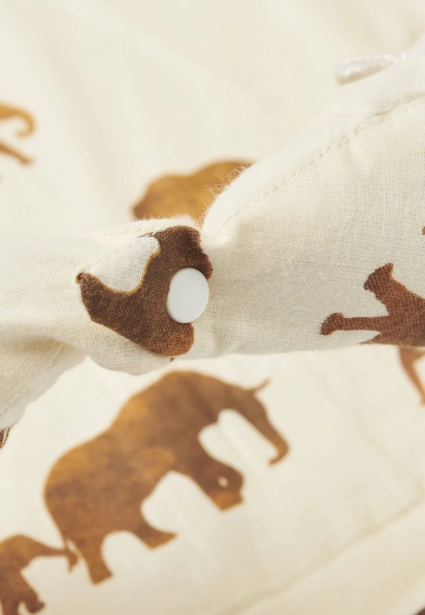 De producten uit deze heerlijke Savannah collectie maken jou en je kindje direct vrolijk. Vanaf dat je baby piepklein is kun je al los met de olifantjes print. Want in deze collectie vind je niet alleen dit geweldige babynestje, maar ook lakens, monddoekjes en slabbetjes. En zelfs een babyslaapzak kan niet in deze collectie ontbreken. Maak er dus een complete vrolijke bloemenzee van! Combineer de Savannah collectie met de Spring knit in Ivory en Chestnut. Daarnaast is het ook te combineren met de Bliss knit in de kleur Caramel en Nougat.
