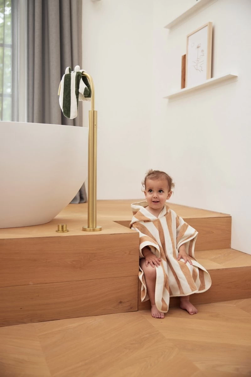 Shop deze te leuke gestreepte badponcho in Biscuit en Leaf Green