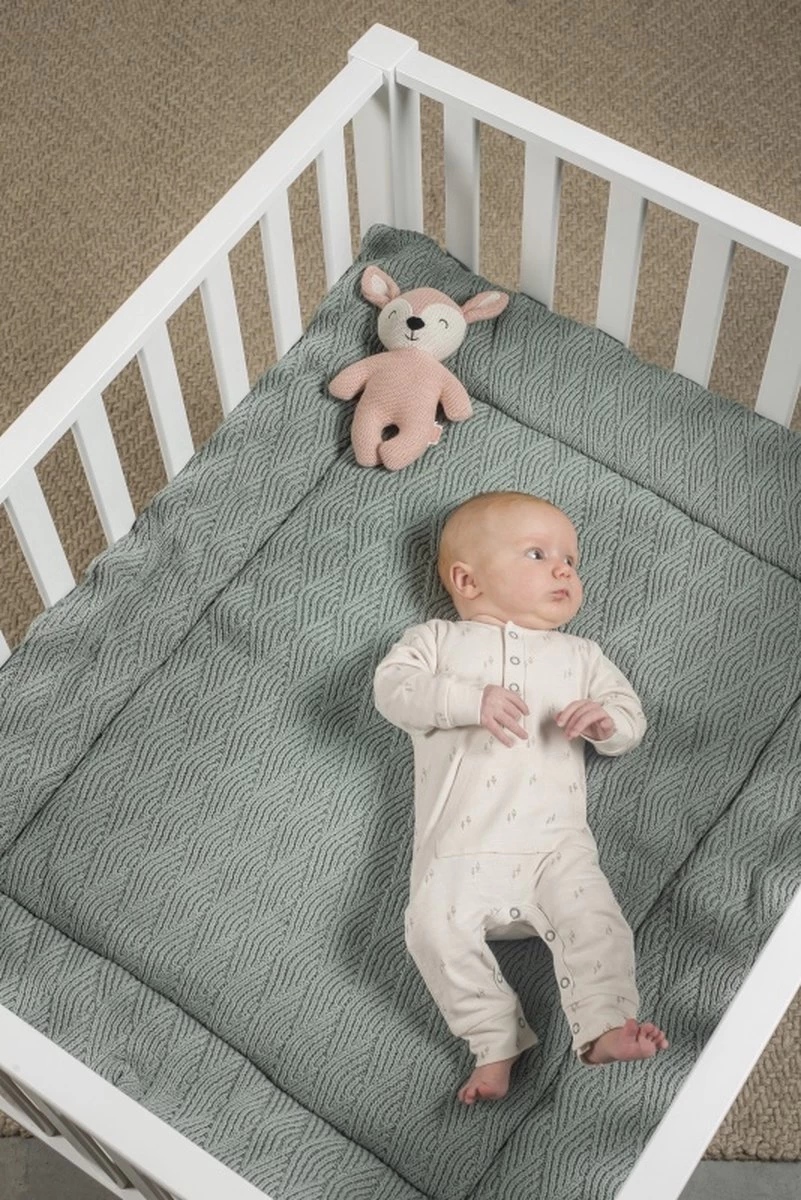 Met boxkleed van luxe breisel in golfjespatroon geeft jouw baby een comfortabele en zachte ondergrond tijdens alle speelmomenten in de box en op de grond.