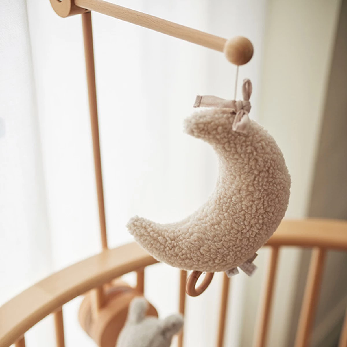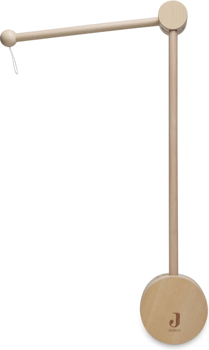 Deze houten mobiel arm is een handig basis item om te combineren met verschillende soorten losse speeltjes, zoals bijvoorbeeld de muziekhanger van Jollein. Een accessoire maak je gemakkelijk aan de arm vast door het touwtje wat aan het uiteinde bevestigd is.