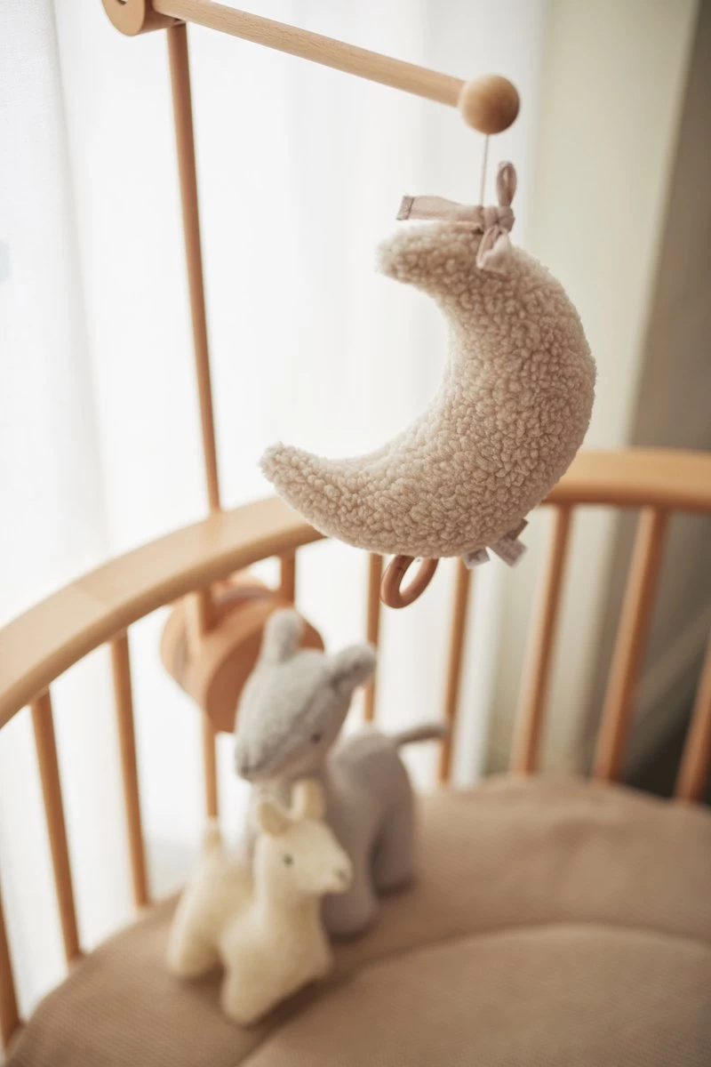 Baby’s vinden het super leuk en interessant om naar bewegende figuurtjes te kijken of te luisteren naar de muziek uit een muziekhanger. Soms vallen ze er zelfs van in slaap. Ook kun je de arm van positie veranderen zodat hij altijd op de perfecte hoogte hangt voor jouw kleintje. Je hoeft niet bang te zijn dat de houten arm jouw box beschadigt, want aan de binnenkant van de bevestigingscirkel zit vilt.
