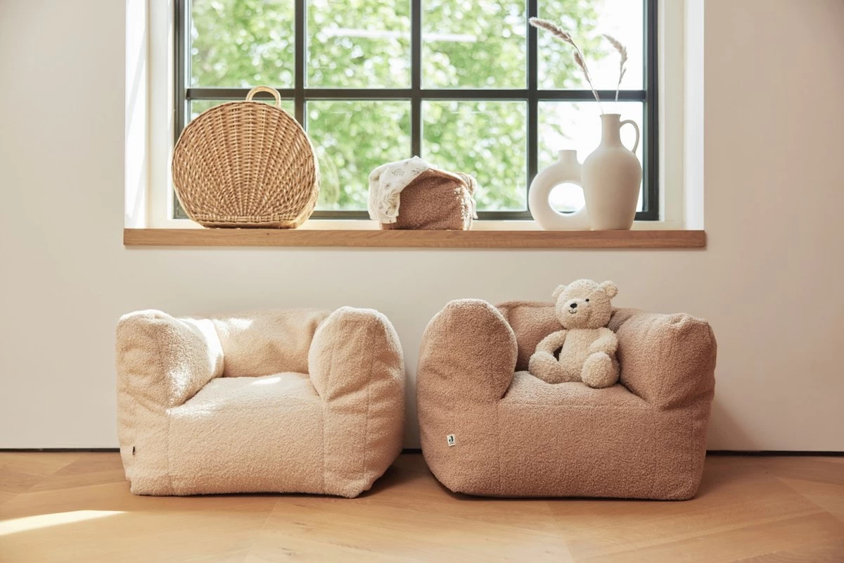 Kinderen vinden het gezellig om erbij te kunnen zitten. In dit zitzakje kunnen ze lekker chillen en televisie te kijken. Ook is het makkelijk bij de salontafel te schuiven voor een spelletje of puzzeltje. Het staat ook nog eens gezellig in de woonkamer of slaapkamer. Door de ruime keuze uit de verschillende zachte kleuren zit er vast een kleur bij die goed staat in je interieur. Dit is een origineel en waardevol kraamcadeau. De zitzak is lang te gebruiken, geschikt van 1 tot en met 4 jaar. En zolang het nog niet wordt gebruikt, is het vast een gezellige decoratie op de kinderkamer. De stoel is er in twee uitvoeringen. Beide uitvoeringen zijn van hetzelfde hippe model en hetzelfde comfortabele formaat. De Bouclé stof is superaaibaar en staat gegarandeerd leuk in ieder interieur!