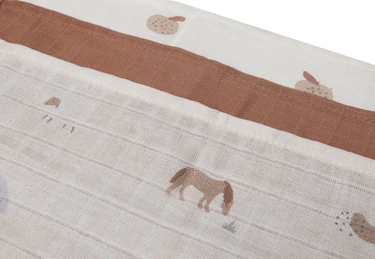Huisje, boompje, beestje! Deze prachtige Farm print is geïnspireerd op het buitenleven. De print bevat allerlei diertjes die je op de boerderij terugziet. Deze vrolijke print staat gegarandeerd leuk in iedere babykamer. Ontdek onze slaapzakjes, hydrofiele doeken en slabbetjes met deze schattige print. Daarnaast is er ook houten speelgoed beschikbaar van dit gave thema. Wist je dat het lammetje van de Farm print haar eigen collectie heeft bij Jollein?