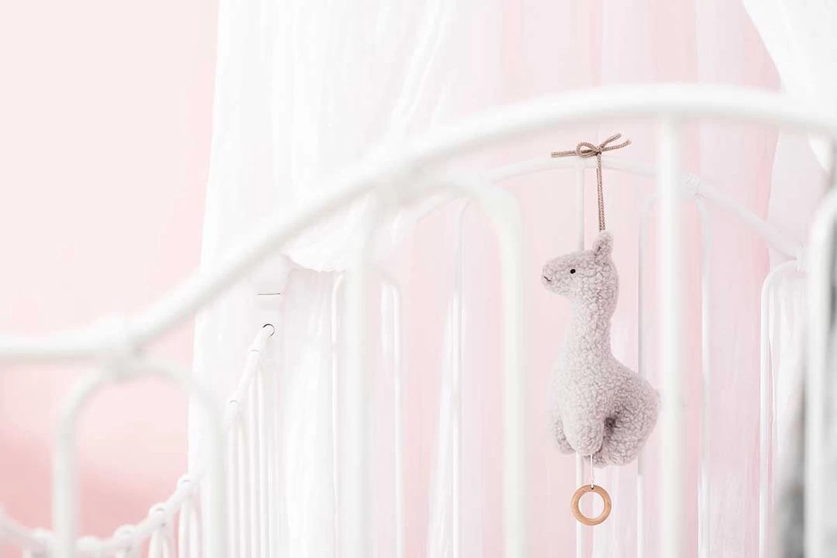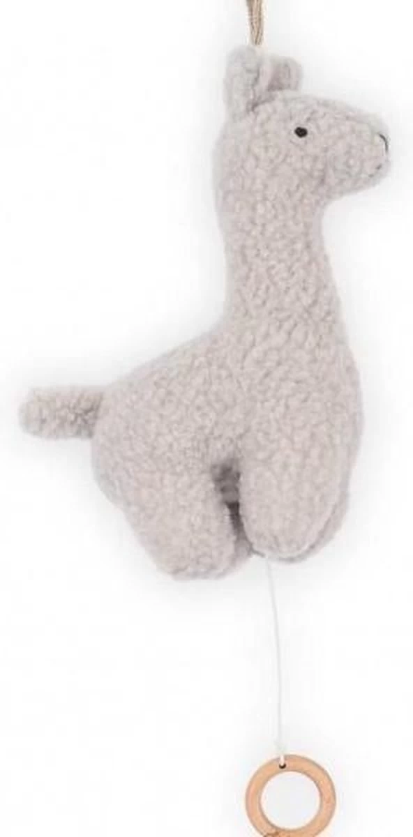 Trek maar aan het touwtje en de lama laat een liedje horen. Een muziekje kan rustgevend werken voor een baby. Deze leuke muziekhanger is een muziekdoosje in knuffelvormDe lama heeft een trekkoord met houten ringetje en aan de bovenkant van zijn hoofd zitten touwtjes om de hanger zo op te hangen dat je baby het lamaatje wel kan zien en horen ‘zingen’ maar het niet kan grijpen. Door de neutrale kleuren staat deze muziekhanger leuk in elke babykamer. De lama brengt het liedje ‘Mozart’s lullaby’ ten gehore en dit speelt ongeveer 60 seconden per keer af. Vast lang genoeg om jouw baby in slaap te krijgen? Als je het elke dag herhaalt, wordt het een slaapritueel en daarmee een herkenning om te gaan slapen.Tip: speel het muziekje regelmatig vlakbij jouw zwangere buik en je zult zien dat het vertrouwd en rustgevend is voor jouw kleintje als het net geboren is. Deze muziekhanger is daarom een leuk zwangerschapscadeau. Ook als kraamcadeautje zal het in de smaak vallen. Deze lieve lama kun je vaker terug laten komen in de box of het bed. Zo zijn er speendoekjes en knuffels van deze lama’s en er is zelf een complete muziekmobiel.