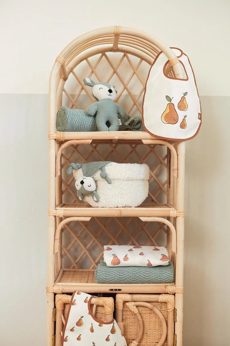 Elke slab heeft een eigen print. Eén slab laat het herkenbare Pear fruit printje, eentje showt een peertje met de bescheiden tekst: ‘you are pear-fect’. En een slab met 3 peertjes uit het Jollein thema Pear.