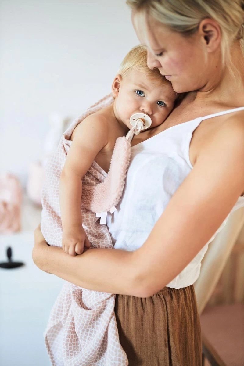 Verpakking bevat 2 speendoekjes in de kleuren ash green & pale pink.